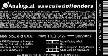 executed offenders, the latest release of the austrian musician and media-artist „analogs.at“ (http://www.analogs.at), is put together with the last spoken words of all people executed in the State of Texas in 2009. All texts were synthesized by means of computer-voices and then purified with noise reduction systems. What is left after this purification is the silence between the last words of people who got extinguished from our society. But just as the extinction of a living leaves traces, fragments of the last words remain in this case as well – fragments of an attempted extinction.
